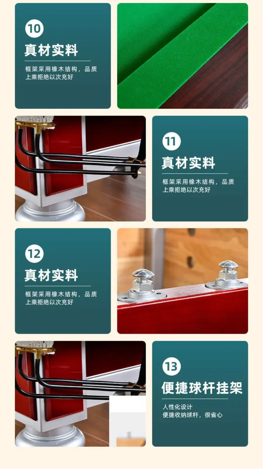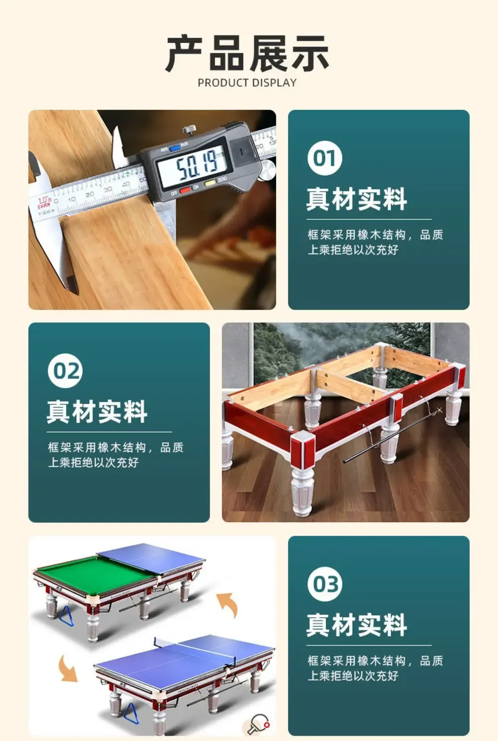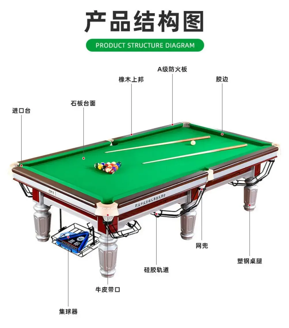 产品简介:台球又称桌球或者弹子球,是球类运动项目之一。它是一项运动员在台球桌上用超过91.4厘米长的球杆,通过按照一定的规则击打主球,使其撞击目标球入袋的一项体育休闲项目。