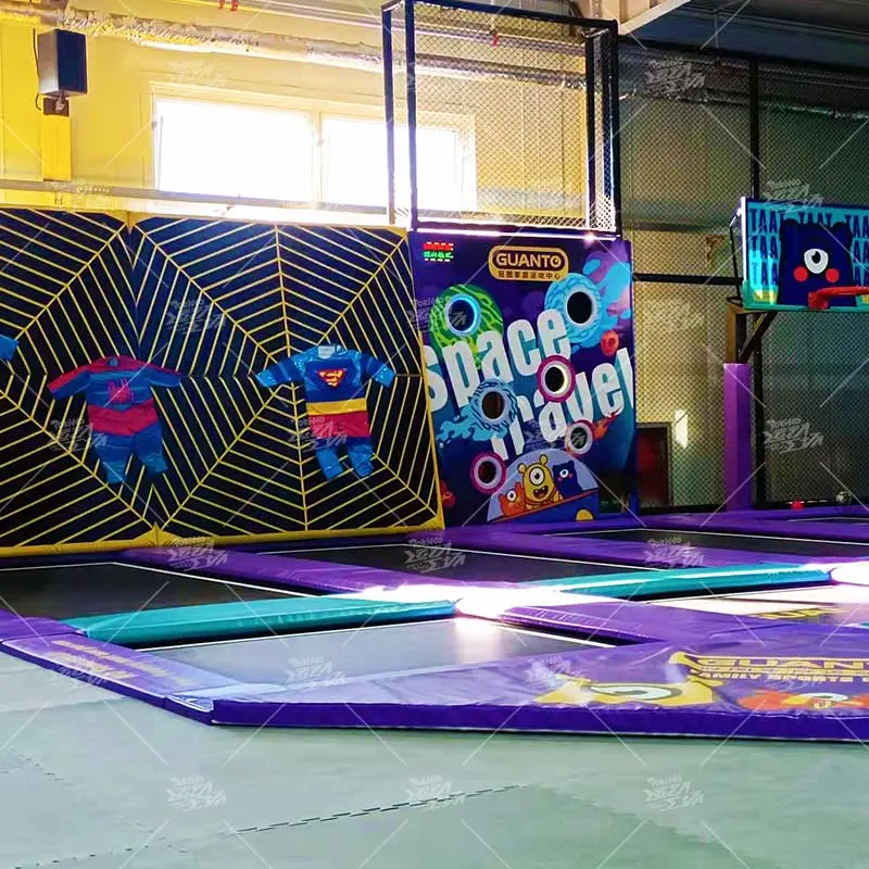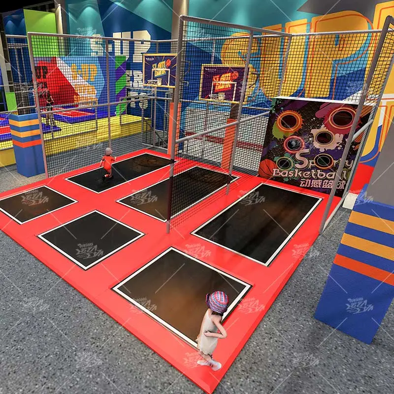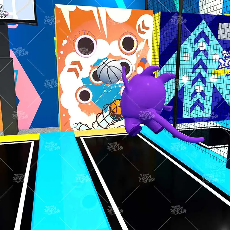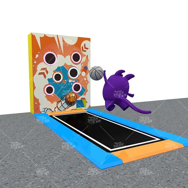 动感篮球是蹦床与篮球投射板的结合,在蹦床上蹦跳的同时将篮球投入目标洞中,十分挑战玩家的篮球的投射能力。