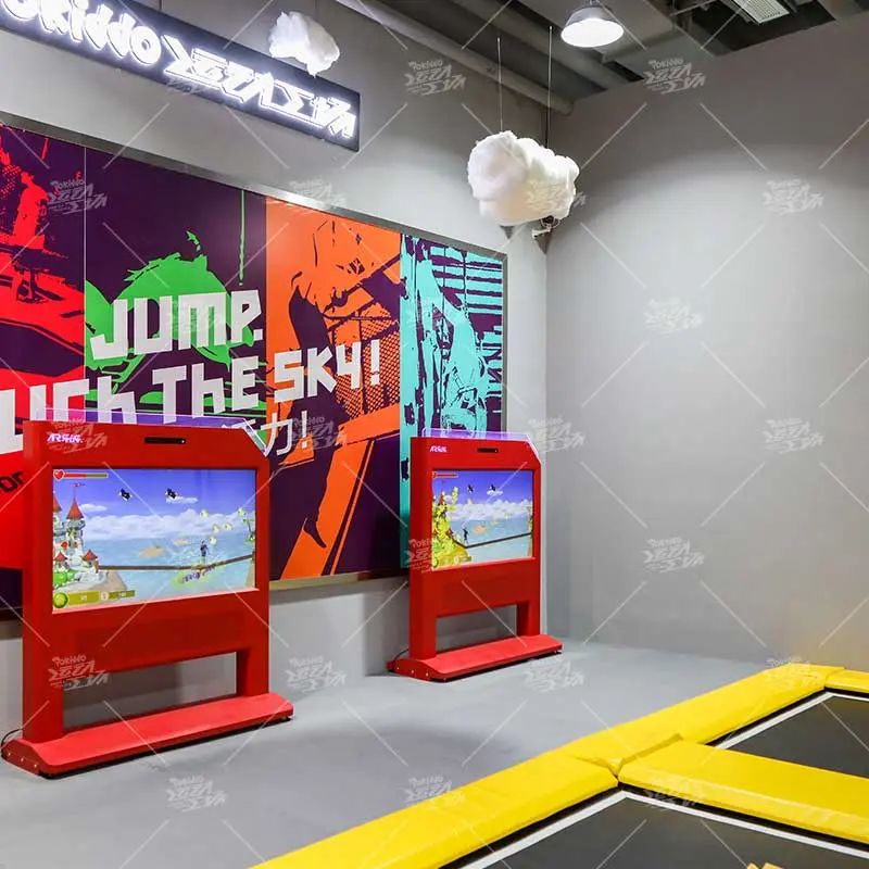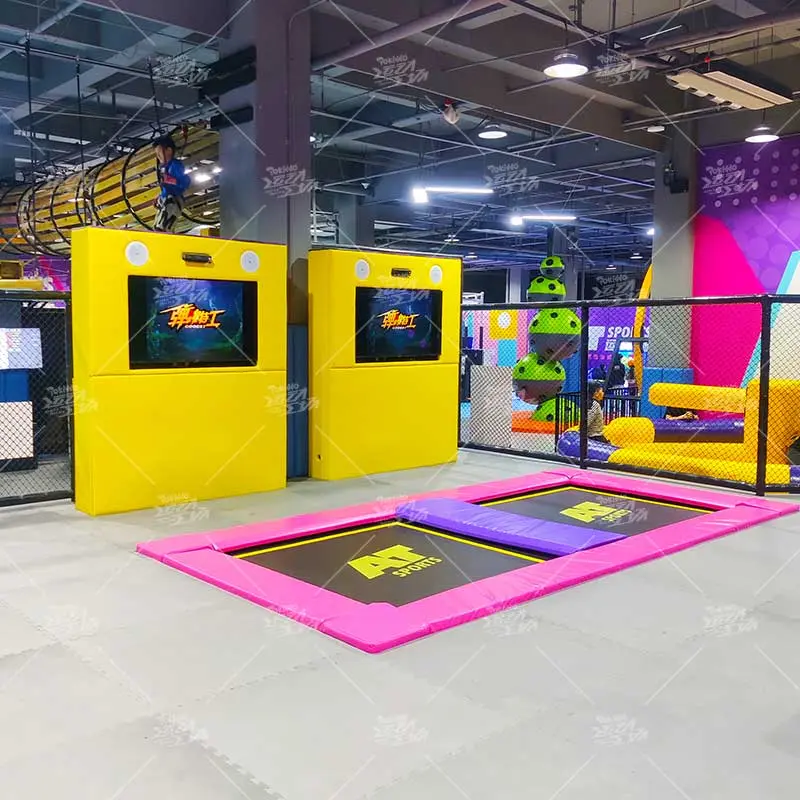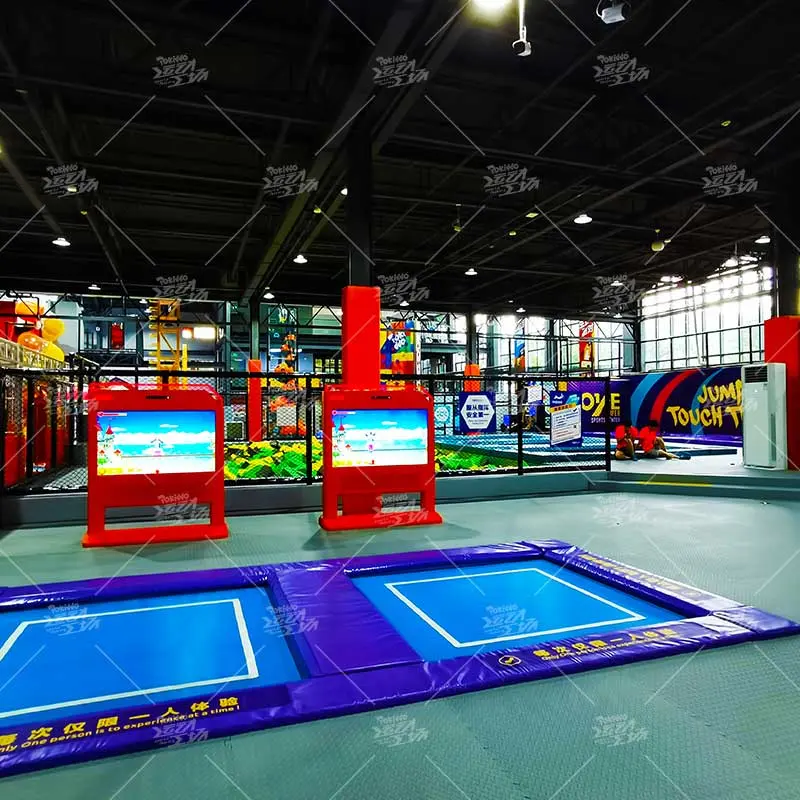 蹦床中心距屏幕3-3.5m;支持定制 - 场地要求层高不低于3.6米;蹦面离地0.9米