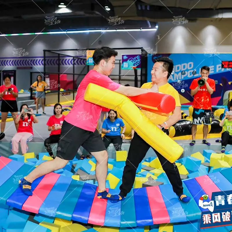 网红荡桥就是一条有弧度会摇荡较剧烈的桥,但与普通的桥有些不同的是,网红荡桥玩的人多才更有趣。网红荡桥搭配海绵池,即使跌落也不会摔伤?!巴斓辞拧钡墓嬖颍盒矶嗳苏驹诘辞派舷蜃蠡蛘呦蛴遥骨潘孀糯蠹业姆较蜃笥乙“?,玩家为了不跌落到桥下面的海绵池中需要用尽办法在桥上保持平衡。
