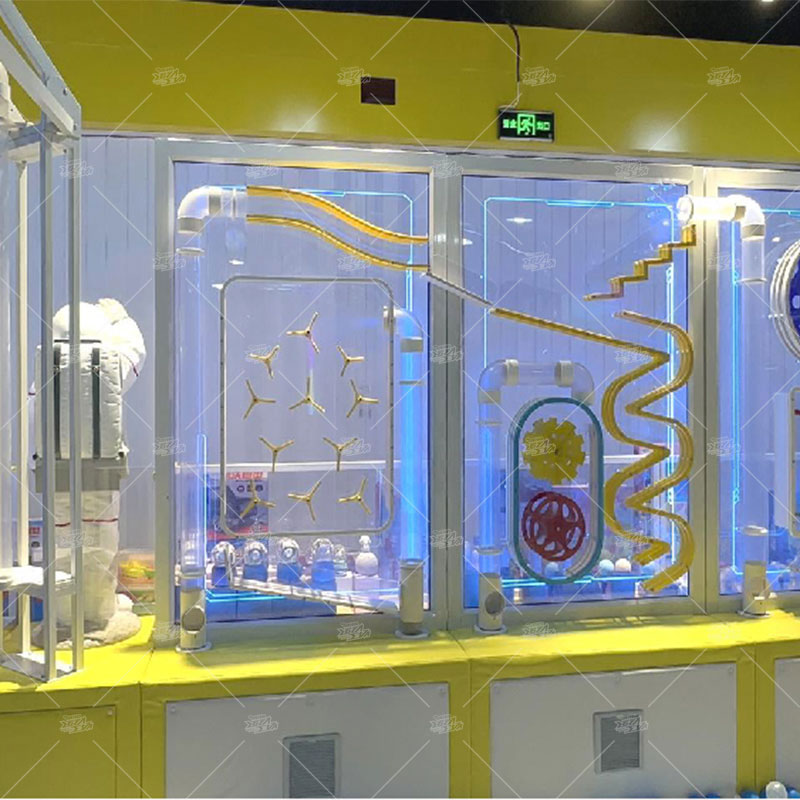 此设备融入声、光、电、音等多重高科技手段,将趣味性与知识性完美结合。运用机械运动中的阻力、自由落体等原理,凸显玩法的多样性,为小朋友们打开探索之门,让小朋友们在玩耍时通过观察与思考,将繁琐的科学知识化为其乐无穷的快乐因子,达到寓教于乐的目的。