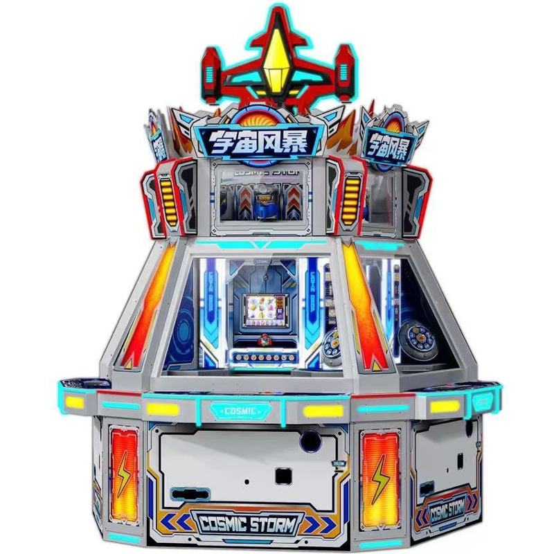 产品简介:电玩推币机系列游艺机是融合策略操作与即时奖励的经典游艺设备。玩家投入游戏币启动推盘装置,通过精准计算硬币堆叠角度与推杆摆动时机,触发连锁反应将硬币推落奖池。成功收获的游戏币可兑换成积分奖券,累积至指定数量即可在服务台挑选心仪玩具、文具或电子潮品。