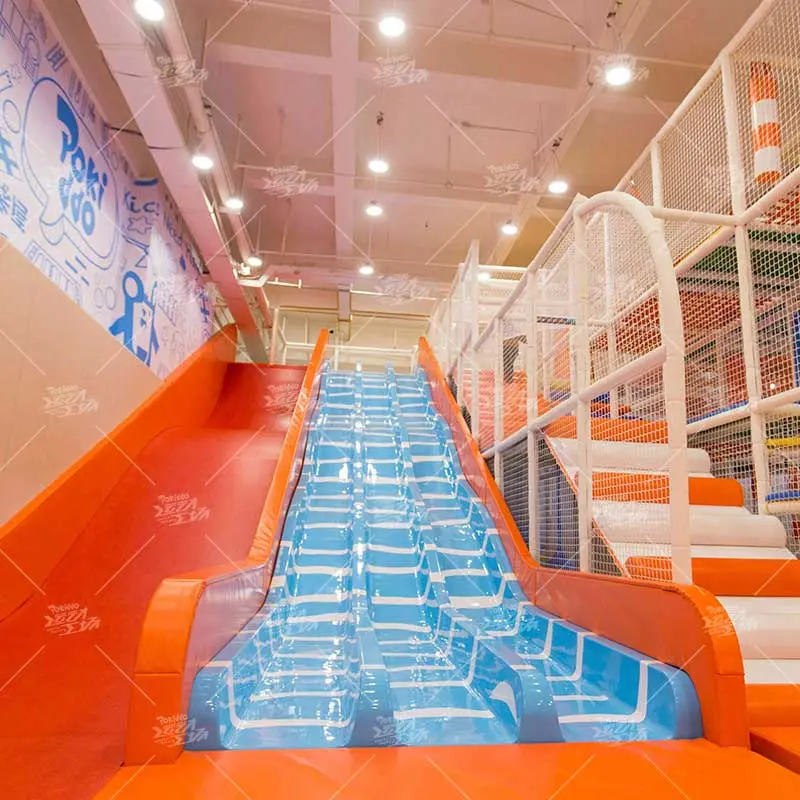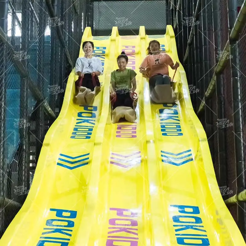 玻璃钢三道滑梯由三个滑道组成,形状为波浪状,在传统滑梯的基础上设计更加独特,长度延长和高度加高更增加了滑滑梯的趣味性,可以多人同时体验。