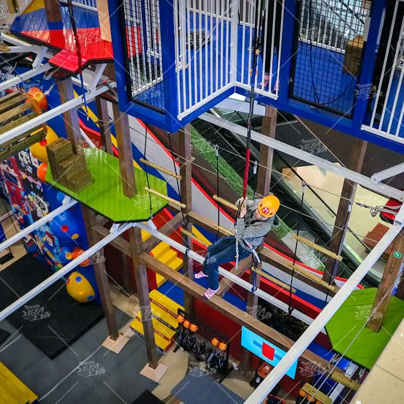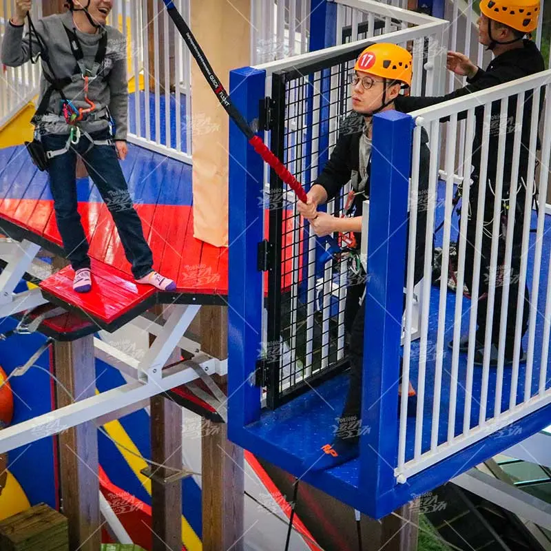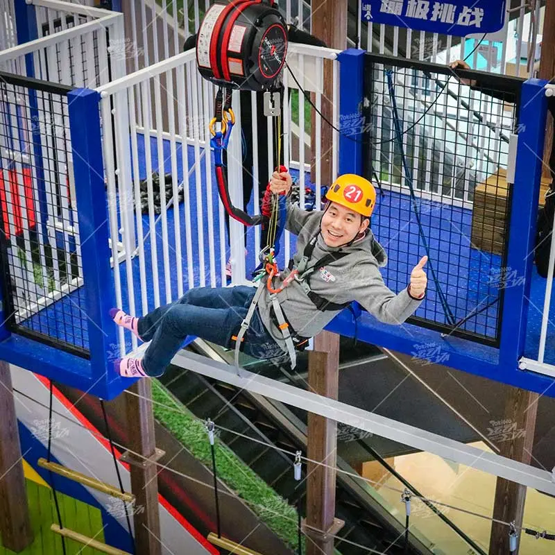 迷你蹦极又称为高空速降,是专业蹦极衍生出来的mini版和娱乐版,口袋屋迷你蹦极支持定制设计,室内户外均可适用。采用的进口快跳机具备自动调节磁性刹车制动系统,可实现自动收绳和匀速下降,最大程度保障体验者的安全。让玩家在从高空平台跳下时,既不失蹦极的刺激感,也能控制下降速度在一定范围内。