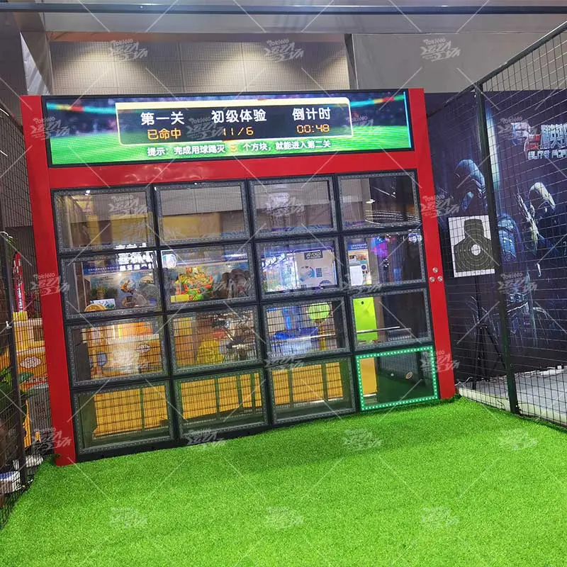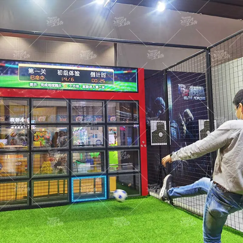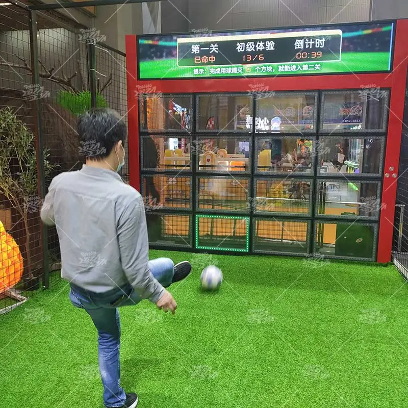 玩家需根据智能球门上方屏幕提出各种要求,清除多余的方块,使图案左右对称,上下对称或者对角对称,锻炼玩家的反应能力、射门的精准度,家庭协作能力。